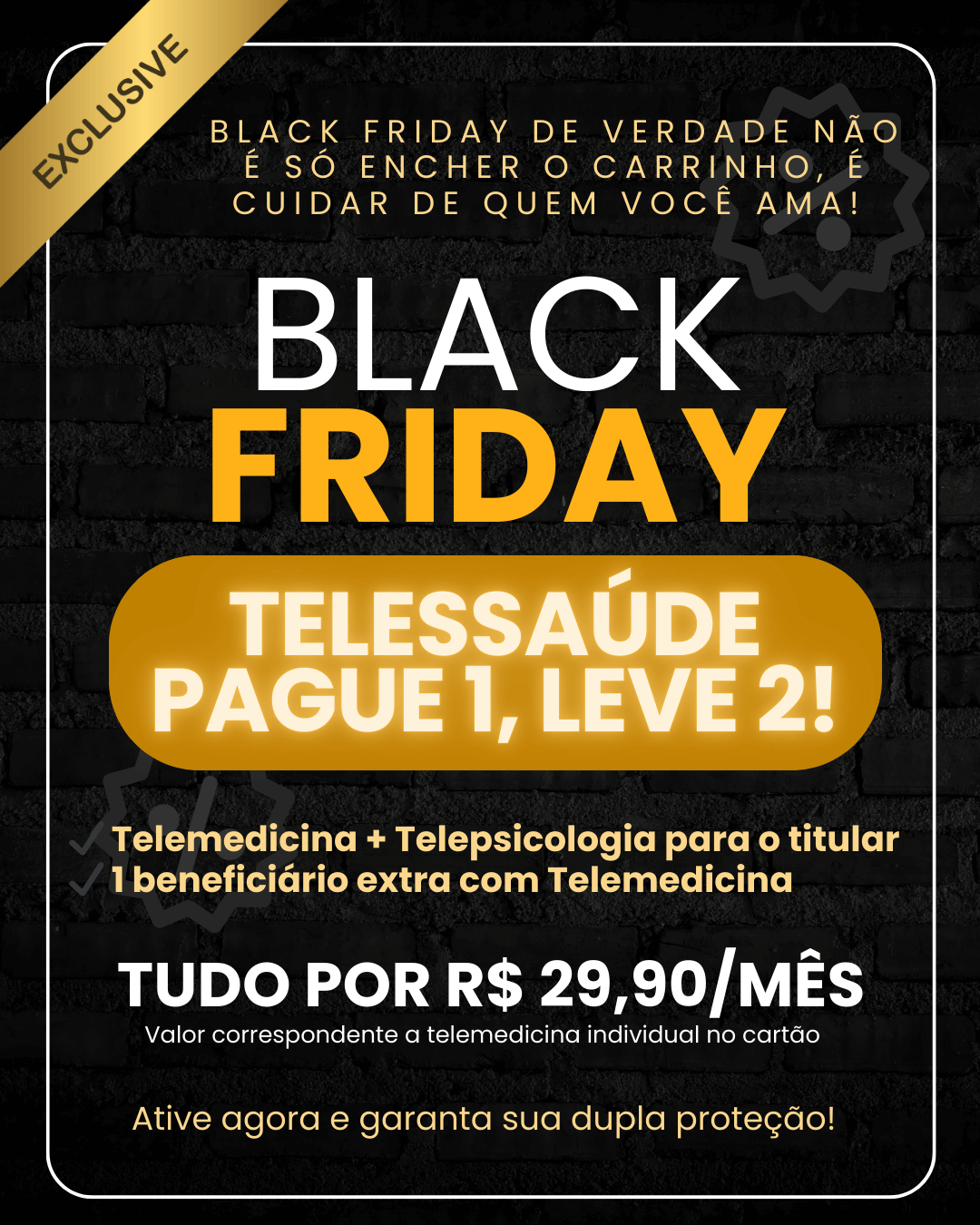 Saúde física e mental online, descontos em medicamentos e opção de descontos em consultas presenciais.